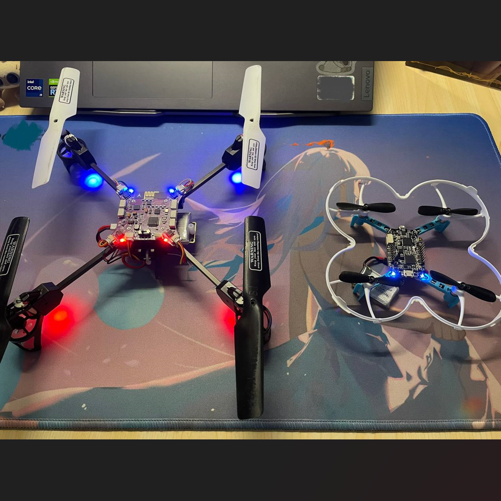 Designed a collaborative quadcopter control system using STM32F4 and NRFx, achieving stable multi-drone motion synchronization.